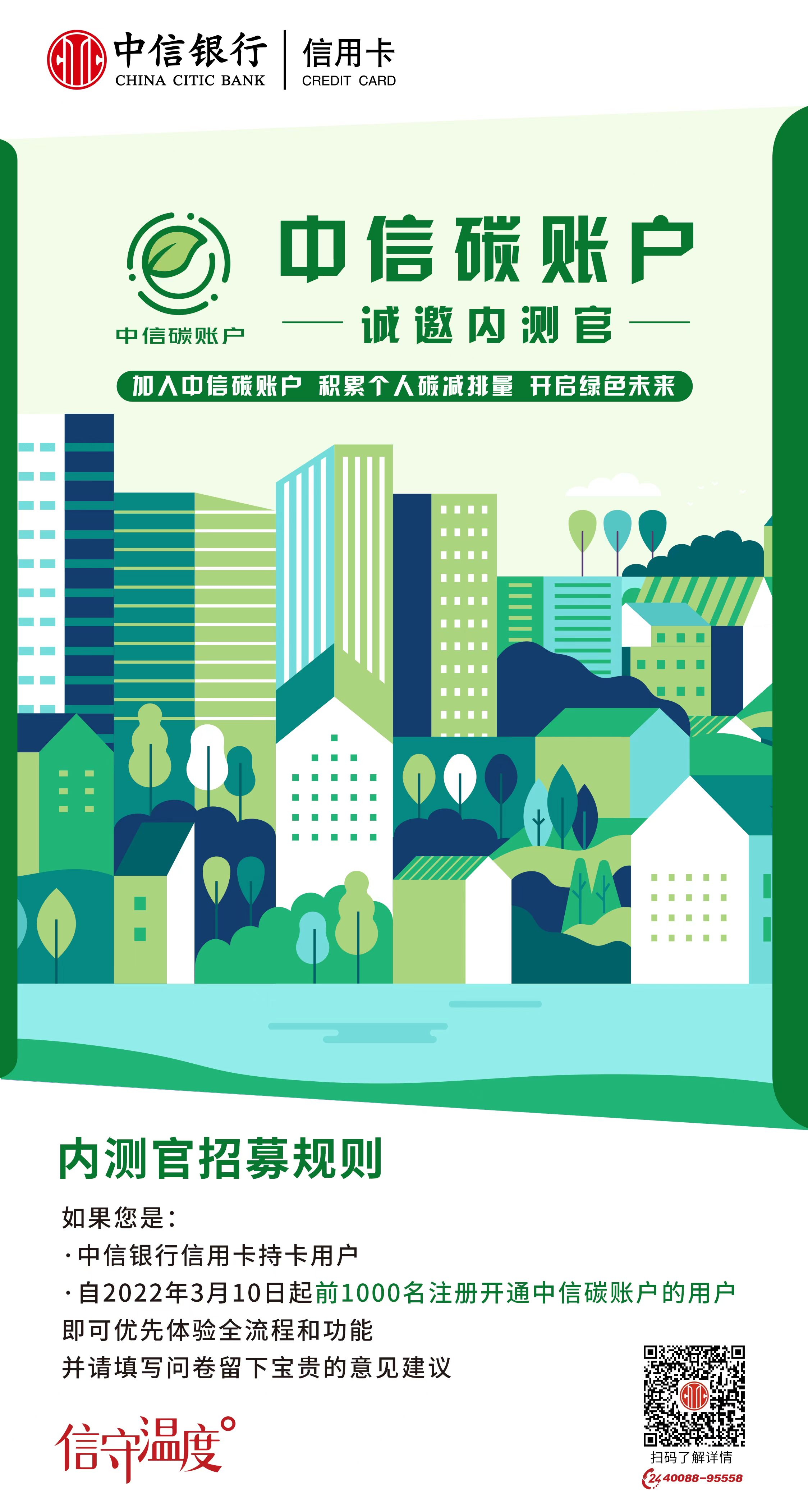 時值中國植樹節(jié)前夕,“中信碳賬戶”內(nèi)測版現(xiàn)已上線,于3月10日起公開招募1000名用戶參與內(nèi)測版體驗,首批體驗官登錄中信銀行信用卡“動卡空間”APP,即可在線開通個人碳賬戶,獲取關(guān)聯(lián)個人低碳行為的碳減排量,并可對碳賬戶的內(nèi)測版功能提供優(yōu)化建議。據(jù)中信銀行相關(guān)負責人介紹,目前,內(nèi)測版已經(jīng)上線生活繳費網(wǎng)上辦理(含水費、電費、燃氣費等)、申請電子信用卡、開通電子賬單等低碳行為的碳減排量核算。即將上線的公開版還將包含綠色出行、二手回收等更豐富的綠色低碳生活場景。