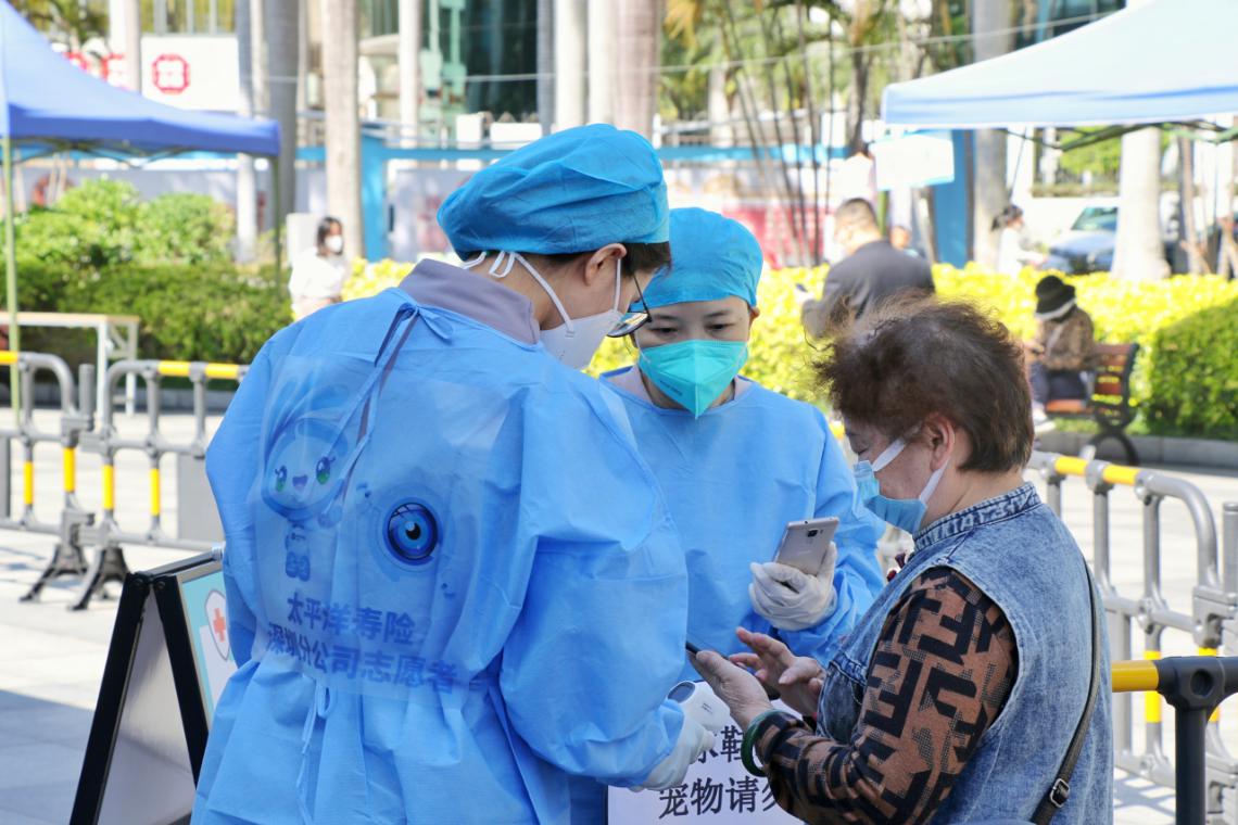 自3月9日起,中國太保壽險深圳分公司志愿者每天分兩批前往蓮花一村社區(qū)核酸點開展志愿服務。在社區(qū)入口,他們嚴守“入口關”,輕聲提醒社區(qū)居民和訪客掃描“場所碼”,認真查驗每一位居民和訪客的健康碼情況;在核酸服務隊伍,他們耐心維持隊伍秩序,提醒居民做好自我防護、保持一米距;在核酸服務綠色通道處,他們以熱情的態(tài)度詳細解答居民的疑惑,指導老人、小孩和特殊人群掃碼、填寫資料;在居民樓里,他們拿著小喇叭,一層樓一層樓地提醒居民們下樓做核酸......他們全力以赴,以扎實的工作、貼心的服務當好疫情聯(lián)防聯(lián)控的“守門員”“服務員”“宣傳員”,用實際行動點起了陰霾下幾抹火紅的溫暖,架起了抗疫防疫“暖心橋”。