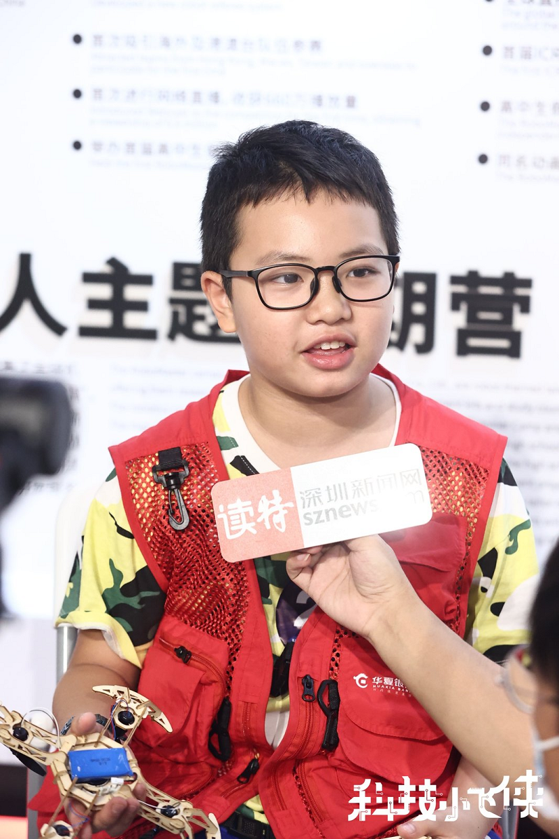 第一個完成木制無人機的小飛俠接受記者采訪。(圖源:深圳新聞網(wǎng))