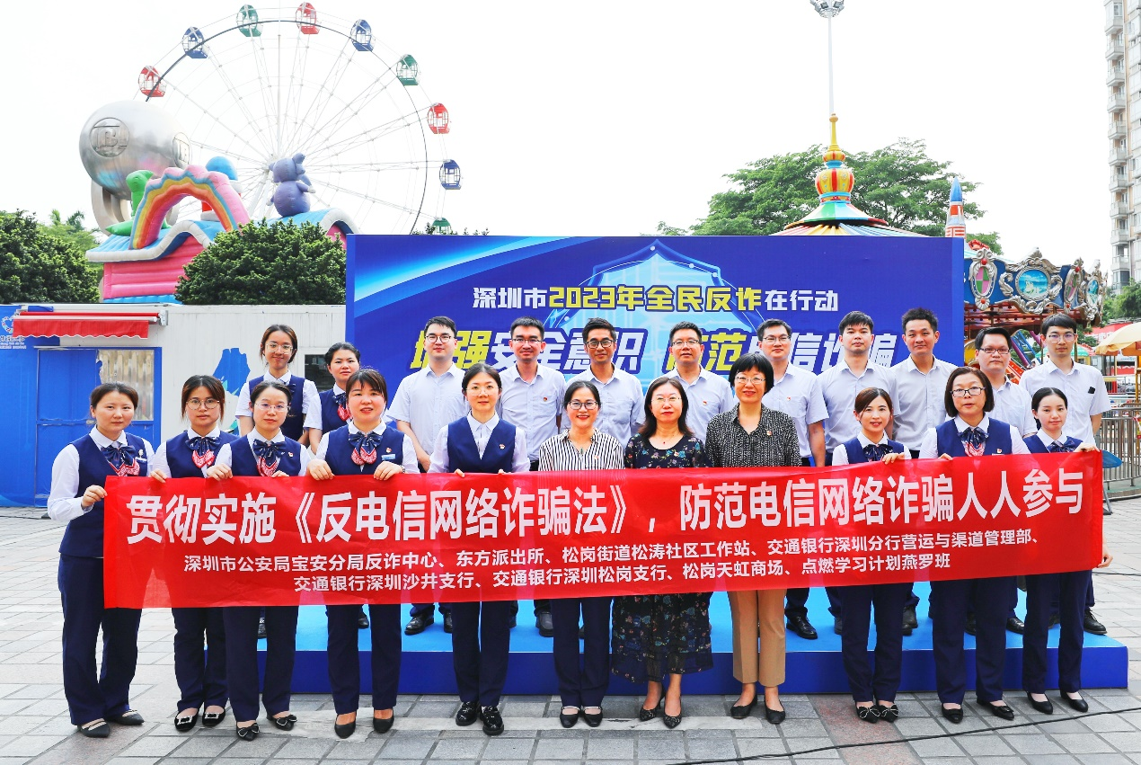 讀特客戶端·深圳新聞網(wǎng)2023年6月1日訊(記者 朱琳 通訊員 張?zhí)駥帲檫M(jìn)一步提高群眾防范各類電信詐騙安全意識,有效打擊詐騙犯罪,預(yù)防和減少電信詐騙案件的發(fā)生,廣泛宣傳落實《反電信網(wǎng)絡(luò)詐騙法》,6月1日,交通銀行深圳分行聯(lián)合深圳市公安局寶安分局反詐中心、松崗街道辦、東方派出所、松濤社區(qū)工作站、松崗天虹商場開展了主題為“2023年全民反詐在行動——增強(qiáng)安全意識,防范電信詐騙”的戶外片區(qū)反詐宣傳活動。