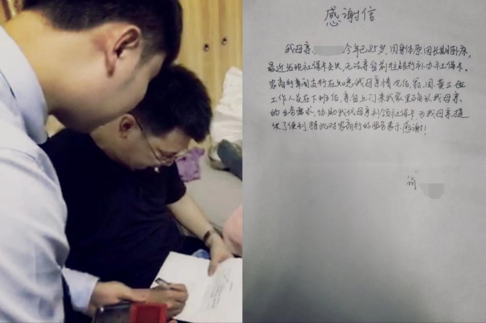 深圳農(nóng)商銀行觀瀾支行“窗口”移至“家門口”。2024年5月,觀瀾支行接到客戶翁先生反饋其85歲母親的社??ú簧鬟z失,急需補回卡取養(yǎng)老金。但阿婆長期臥床,行動不便,無法出門。針對此情況,觀瀾支行工作人員告知客戶,可通過上門核實阿婆的情況及意愿后,由其代母親辦理。后續(xù)在確認客戶時間后,觀瀾支行安排員工上門核實阿婆委托兒子辦理業(yè)務的意愿。在確認其意愿清晰真實后,阿婆的兒子到網(wǎng)點為其代辦了相關業(yè)務??蛻魹榇耸謱懜兄x信對工作人員的貼心服務表達了感激。