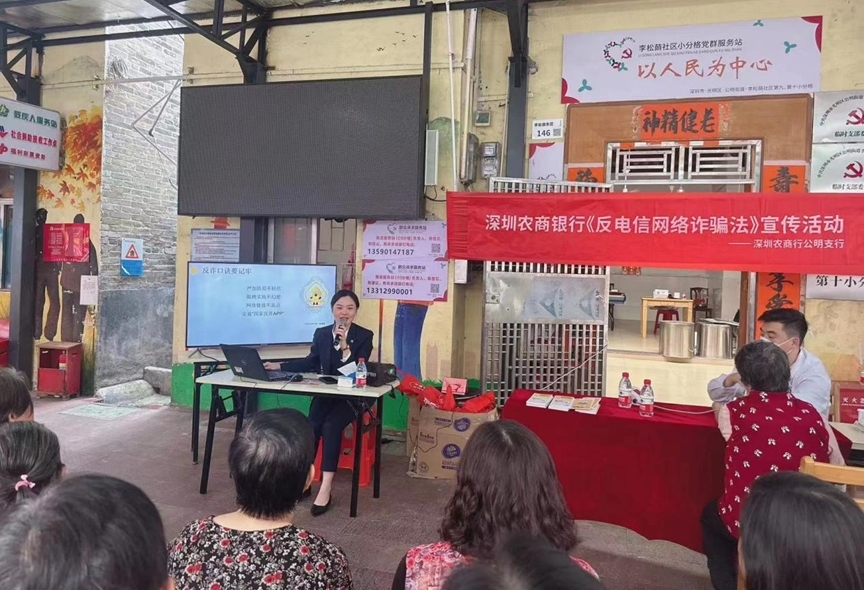 深圳農(nóng)商銀行公明支行筑牢老年金融安全防線。為增強老年群體風險防范意識,幫助廣大老年人守好“錢袋子”。2024年3月,公明支行在李松蓢老人活動中心舉辦主題為“警惕養(yǎng)老騙局,守護錢袋子”的反詐宣傳活動。工作人員通過PPT演示、案例演練、發(fā)放宣傳折頁、游戲互動等方式,揭示非法集資與電信詐騙的種種伎倆,讓阿公阿婆認清騙局真相,在輕松愉快的氛圍中掌握防詐知識。