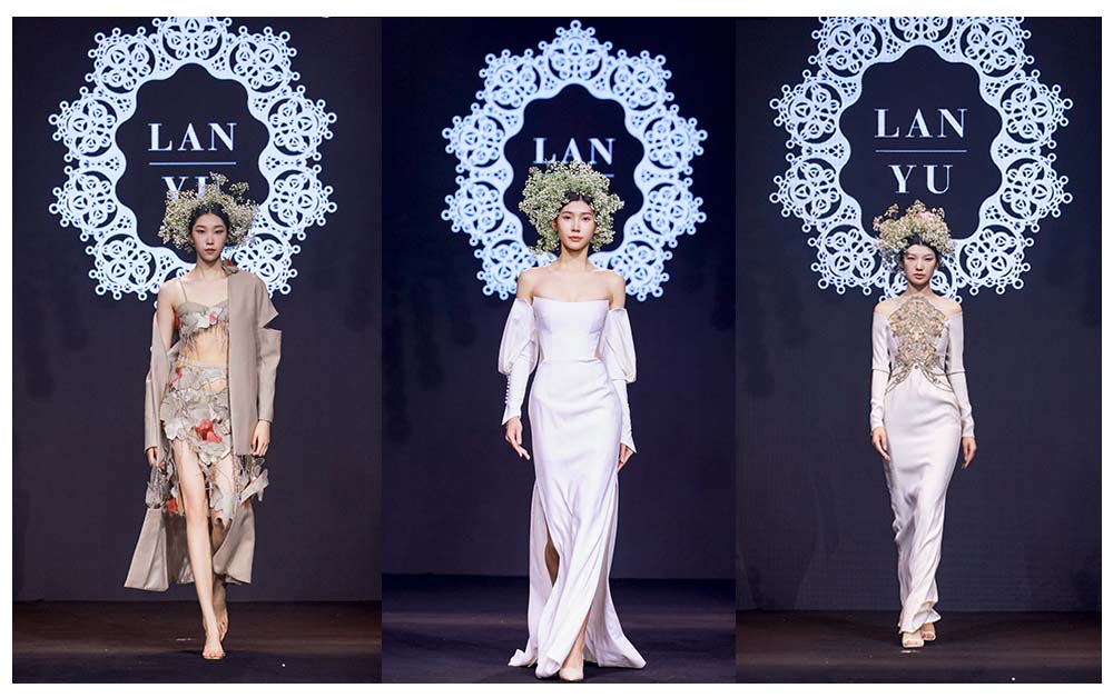 現(xiàn)場更有LANYU高定禮服展示,將中式美學(xué)意境與西式時(shí)尚剪裁完美融合,同時(shí)加重了蘇繡非遺元素的應(yīng)用比例,將更多的非遺技藝融入服飾創(chuàng)作中,呈現(xiàn)出超高藝術(shù)水準(zhǔn)。