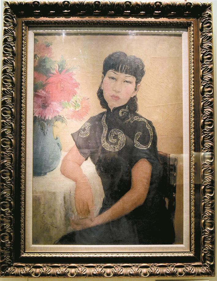 記者在現(xiàn)場(chǎng)看到,這幅最有名的自畫(huà)像作于1940年,畫(huà)中人身著黑色素花旗袍,斜著頭優(yōu)雅地坐在圓桌邊,桌上置一瓶紅花。古典高雅的著裝,端莊大氣的姿態(tài),眉宇間一縷淡淡的憂愁,增添了的神秘美感。整幅作品用色豐富,筆觸明快。據(jù)悉,這幅作品創(chuàng)作時(shí)正值二次世界大戰(zhàn)爆發(fā),巴黎淪陷,潘玉良棲居郊外,在這一時(shí)期,還有很多佳作問(wèn)世。