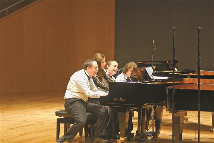 四位外國(guó)鋼琴家在盡情演奏《加洛普進(jìn)行曲》。劉元舉 攝