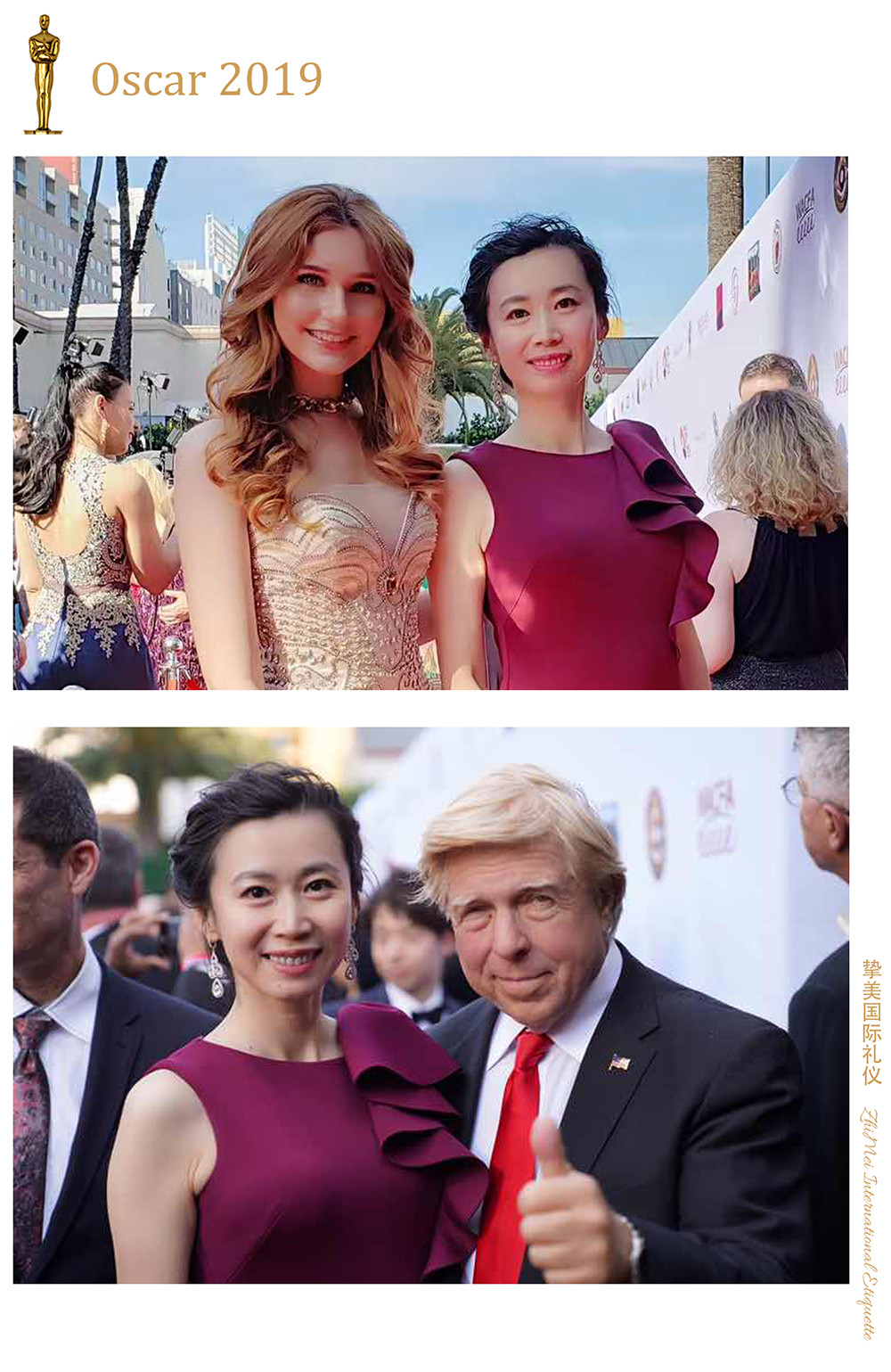 作為首位在美國(guó)新英格蘭禮儀學(xué)院被授予青少年禮儀師資認(rèn)證的中國(guó)人,同時(shí)又是世界范圍內(nèi)第三位被美國(guó)華盛頓國(guó)際外交禮儀學(xué)院授予國(guó)際商務(wù)禮儀培訓(xùn)資質(zhì)禮儀導(dǎo)師的華人,李欣陽(yáng)可謂頭頂燦爛光環(huán),這讓摯美國(guó)際上路之時(shí)已經(jīng)站在一個(gè)非常高的基點(diǎn)之上,意味著格局與視野已經(jīng)領(lǐng)先了行業(yè)一大截,因此能夠受邀參加奧斯卡頒獎(jiǎng)禮也就不足為奇了。