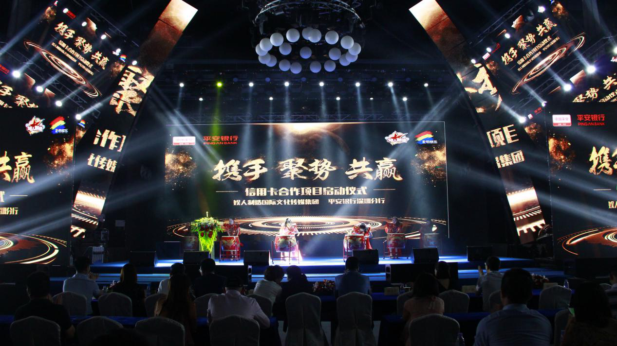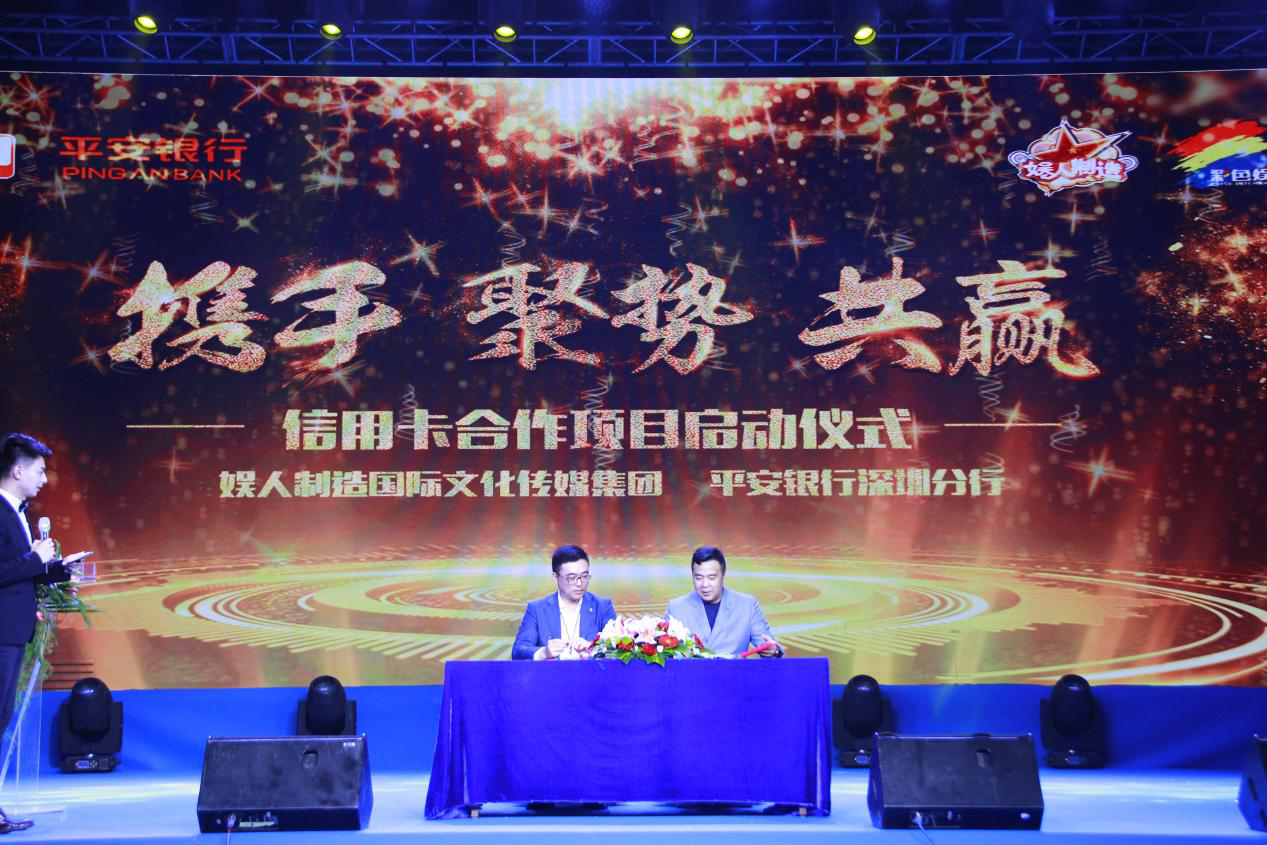 5月17日,銀行界大亨平安銀行攜手娛樂(lè)界大咖娛人制造在深圳娛人制造演吧召開(kāi)【攜手、聚勢(shì)、共贏娛人制造國(guó)際文化傳媒集團(tuán)&平安銀行深圳分行信用卡合作項(xiàng)目啟動(dòng)儀式】。