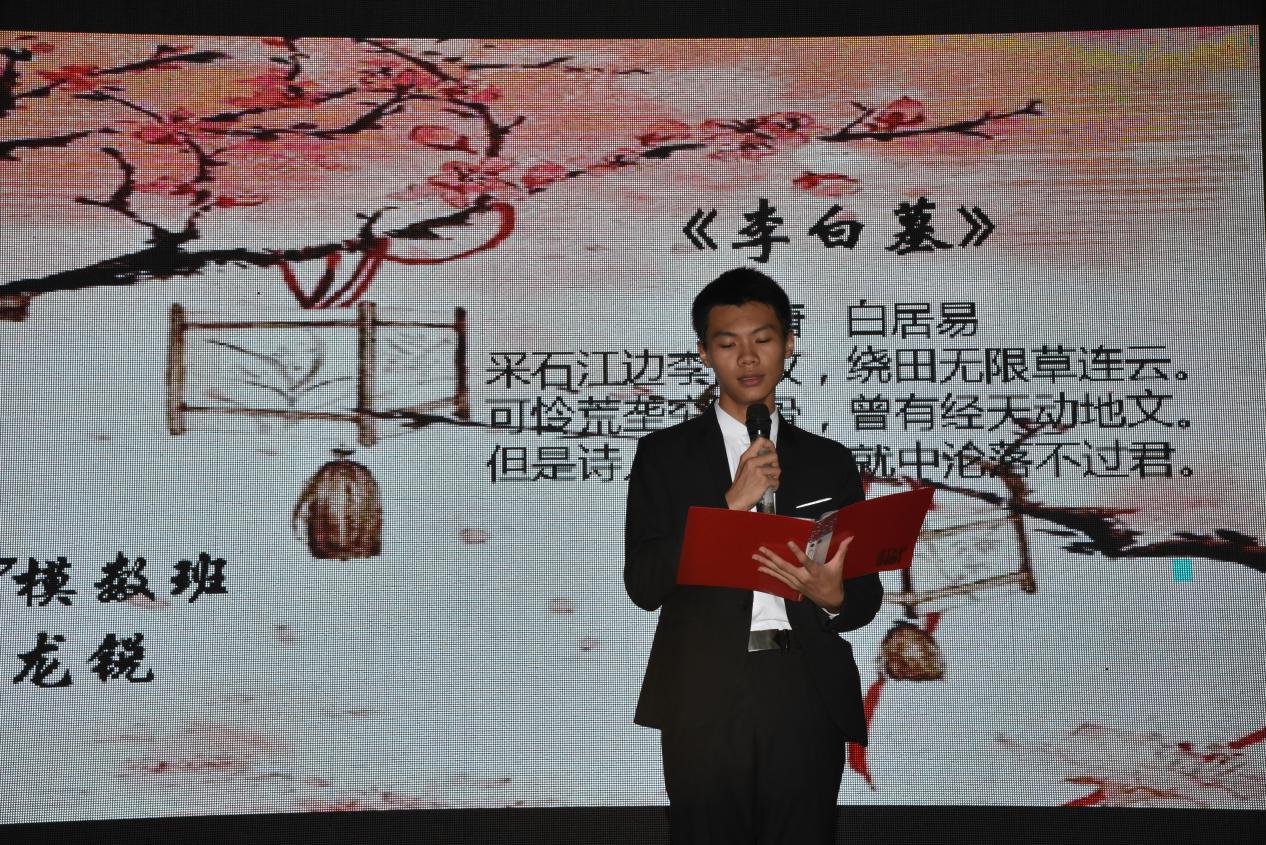 深圳新聞網(wǎng)訊 5月29日晚上,“新時代中華優(yōu)秀傳統(tǒng)文化進社區(qū)”項目第五場活動——“白居易詩歌專場朗誦大賽”在深圳市寶山技工學(xué)校寶山大舞臺拉開了帷幕,由寶山學(xué)子傾情吟誦白居易的詩歌,給聽眾帶來一場唯美動人的視聽盛宴。