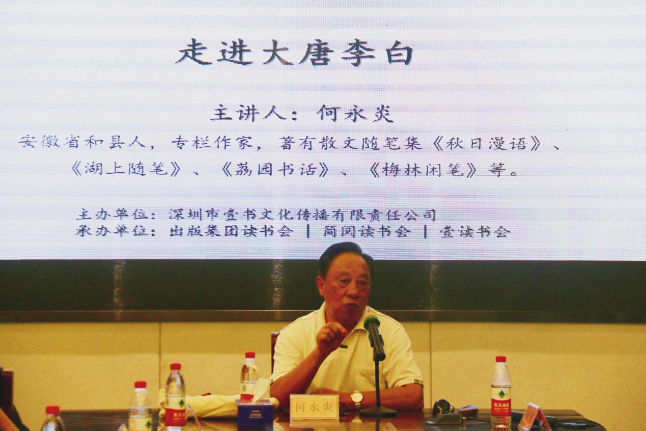 深圳新聞網(wǎng)訊 2019年8月31日下午,“福田區(qū)第三屆文學(xué)精品有聲閱讀藝術(shù)節(jié)”之“唐詩(shī)三百首”專(zhuān)場(chǎng)活動(dòng)“走進(jìn)大唐李白”公益文化講座暨最美唐詩(shī)朗誦會(huì)在簡(jiǎn)閱書(shū)吧香蜜湖店三樓多功能室成功舉辦。活動(dòng)由深圳市壹書(shū)文化傳播有限責(zé)任公司、深圳市書(shū)城文化投資控股有限公司主辦,出版集團(tuán)讀書(shū)會(huì)、簡(jiǎn)閱讀書(shū)會(huì)和壹讀書(shū)會(huì)承辦,本次活動(dòng)吸引了眾多對(duì)中國(guó)傳統(tǒng)文化富有興趣的詩(shī)歌愛(ài)好者,活動(dòng)開(kāi)始前已座無(wú)虛席,靜候這場(chǎng)關(guān)于李白、關(guān)于詩(shī)歌的文化盛宴。