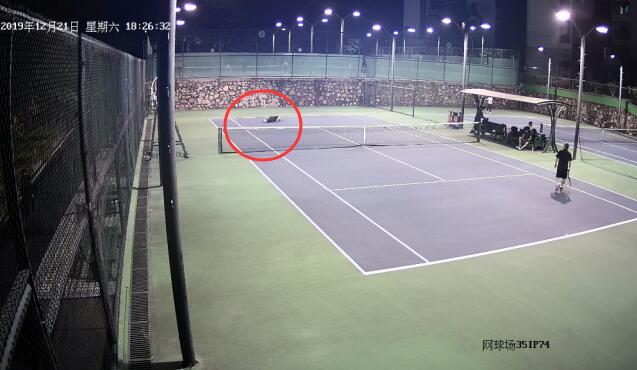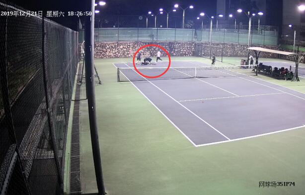 圖:正在打網(wǎng)球的李老伯(遠(yuǎn)處倒地者)突然倒地失去意識(shí)。