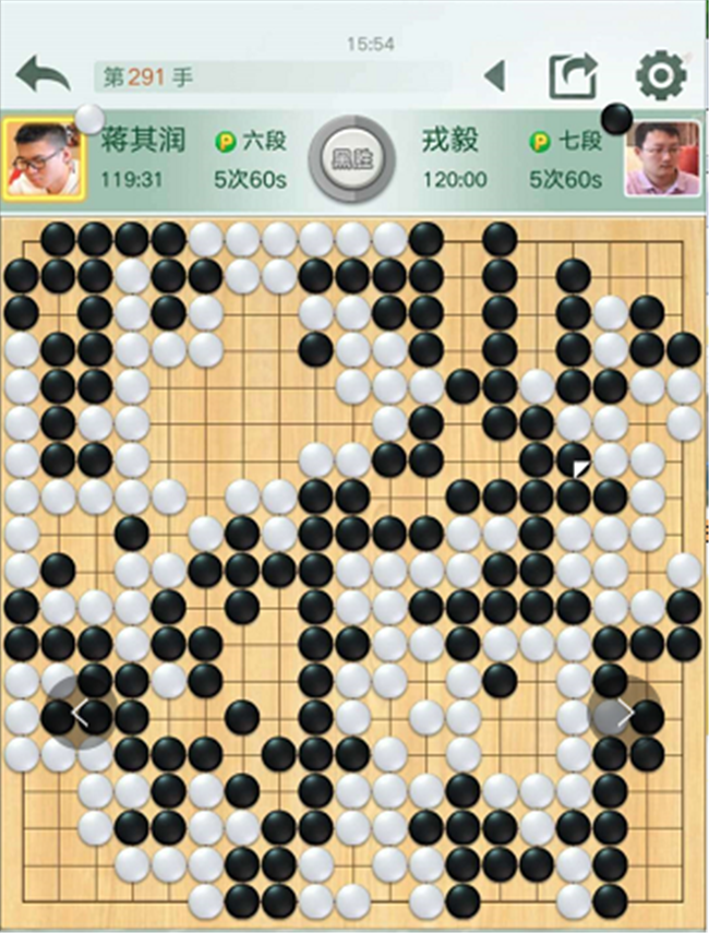 【賽場花絮】本輪比賽中,下出了“四劫循環(huán)”無勝負的棋局。此局出現(xiàn)在上海建橋?qū)W院隊對陣日照山海大象隊的主將之戰(zhàn)中,上海主將李維清與日照主將江維杰下出“四劫循環(huán)”,按規(guī)定,本局判為無勝負。對局停止時,雙方都各剩最后一次讀秒。兩人立即進行加賽。中國圍棋隊領(lǐng)隊華學(xué)明發(fā)朋友圈稱贊棋手具有職業(yè)風(fēng)范。