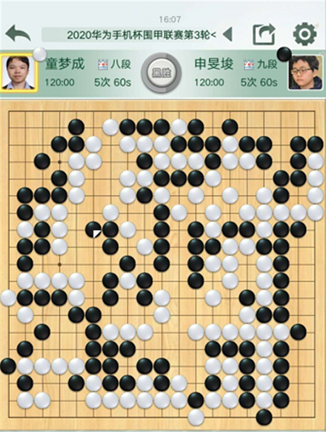 二臺,主將申旻俊執(zhí)白對陣童夢成。局勢一直接近。白126、132連續(xù)走了小棋,黑開始領(lǐng)先。