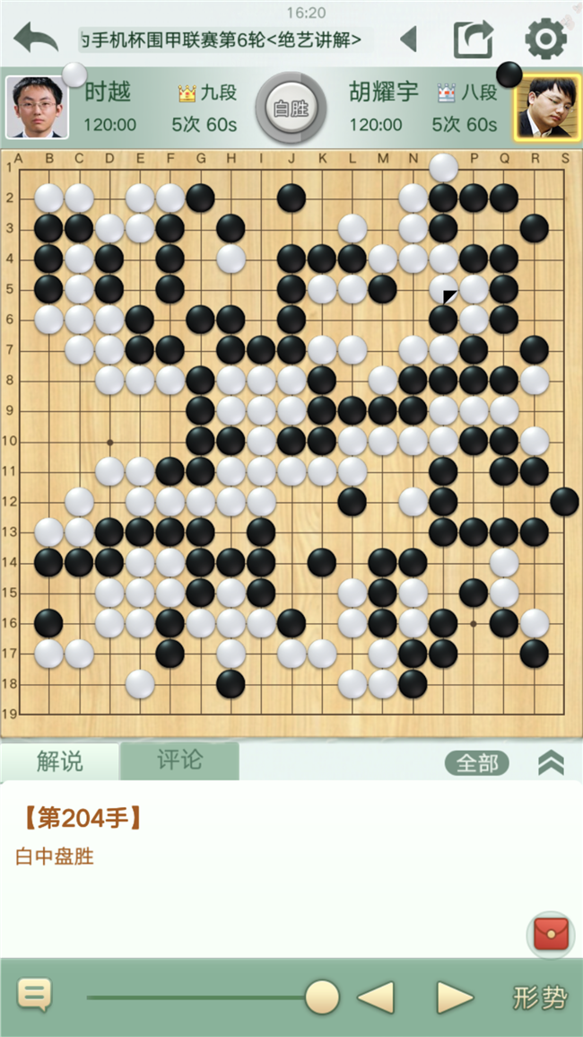 第四臺(tái),時(shí)越執(zhí)白對(duì)陣胡耀宇。在前幾盤不盡人意的情況下,壓力較大。