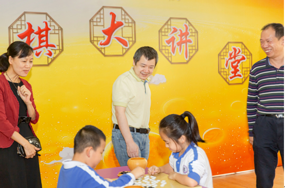 世界冠軍羅洗河、時(shí)越指導(dǎo)小朋友對(duì)局。