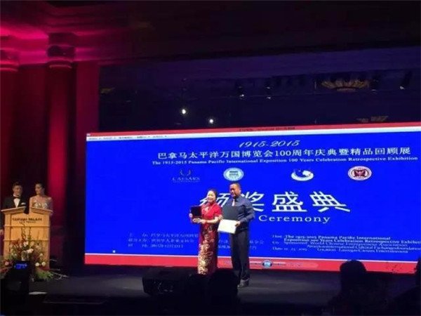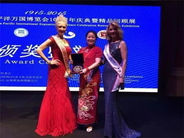唐朝霞老師在萬國博覽會獲獎領(lǐng)獎的情形。