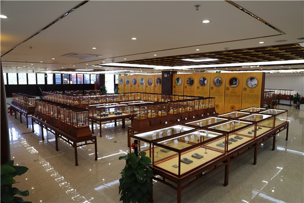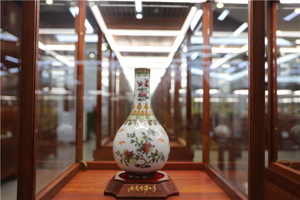 值得重點(diǎn)介紹的是,在珍品陳列區(qū),有不少原全國(guó)人大常委會(huì)副委員長(zhǎng)李鐵映同志親自創(chuàng)作的工藝美術(shù)品。一是“鐵映十八式紫砂”,是李鐵映先生自身藝術(shù)文化修養(yǎng)的結(jié)晶。他以青銅、古玉等重器國(guó)寶為模,以詩(shī)詞、文論為識(shí),以宜興獨(dú)有的紫砂材質(zhì)和豐富的工藝手段,吸取中國(guó)各種傳統(tǒng)工藝的特點(diǎn),創(chuàng)意了具有民族特色的簡(jiǎn)潔古雅的紫砂新藝術(shù),精妙構(gòu)思,博觀約取,歷數(shù)年制成。2010年元月,李鐵映先生將“鐵映十八式紫砂” 捐贈(zèng)一套給國(guó)家博物館。二是限量仿制清宮琺瑯彩瓷?,m瑯彩瓷創(chuàng)燒于康熙,興盛于雍正、乾隆兩朝,之后便沉潛史海,難覓芳蹤。李鐵映先生得知后,高度重視,數(shù)度深入相關(guān)博物館和景德鎮(zhèn)院校、企業(yè)調(diào)研,組織成立“紫玄琺瑯瓷研究室”,確立了“發(fā)掘保護(hù)、繼承發(fā)展”的指導(dǎo)思想,提出“仿古不泥古,仿清更超清”仿制要求,經(jīng)過(guò)成百上千次的反復(fù)試驗(yàn),最終成品,既具有清代康雍乾琺瑯彩瓷的藝術(shù)品味和精神風(fēng)貌,但在材質(zhì)、工藝、技術(shù)等方面有所超越,可以說(shuō),每件作品都能集工藝價(jià)值、文化價(jià)值、歷史價(jià)值、藝術(shù)價(jià)值于一身。