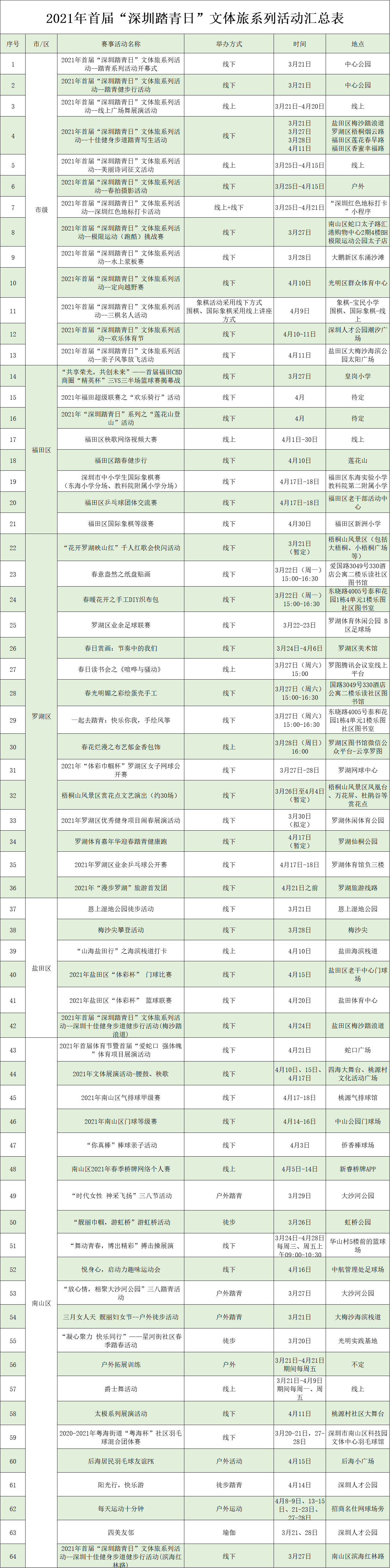 附:深圳踏青日106項(xiàng)活動(dòng)清單: