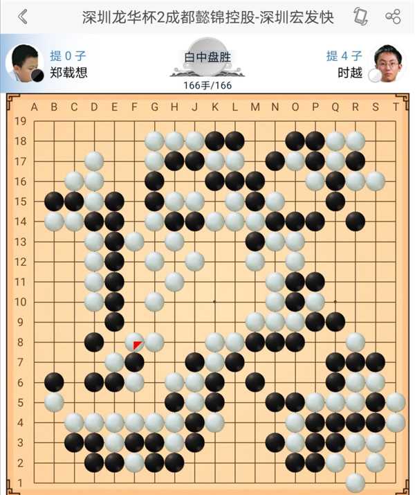 一臺(tái)快棋時(shí)越執(zhí)白對(duì)陣鄭載想。開局黑棋打入左邊白棋模樣,之后黑棋棋形處理不佳,被白棋一路猛攻后損失慘重。之后白棋沒有再給黑棋機(jī)會(huì)活動(dòng)勝利。
