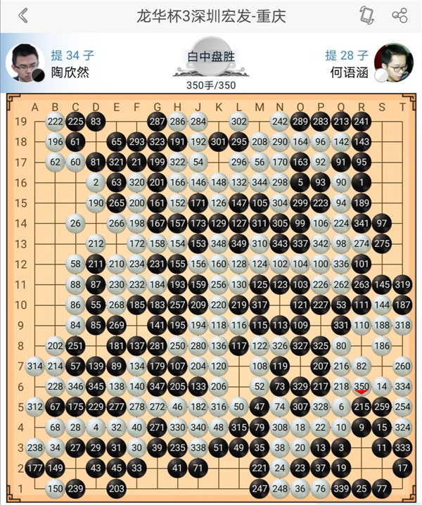 一臺戎毅執(zhí)黑對陣?yán)钴幒?,右上?zhàn)斗后黑棋稍有優(yōu)勢,之后黑棋沖擊中央白棋過分,應(yīng)該慢慢收官,白棋正確應(yīng)對,戰(zhàn)斗中便宜后獲得勝利。二臺主將時(shí)越執(zhí)白對陣等級分排名第二的楊鼎新,中盤黑棋打入右邊后形成亂戰(zhàn),白棋失誤比黑棋更多,戰(zhàn)斗結(jié)束進(jìn)入官子時(shí)黑勝勢。
