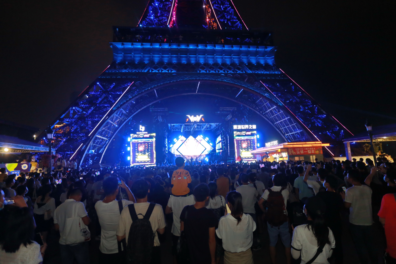 17:00—22:00鐵塔下,今年國慶最重磅節(jié)目超豪華陣容“WOW潮音嘉年華”閃亮登場,本屆潮音嘉年華群星璀璨,新生代實力歌手趙磊、狂歡一路歌舞相隨,國內(nèi)dancerock先行軍“脆莓樂隊”一經(jīng)出場全場狂歡吶喊,粉絲們瘋狂打 call!直擊心靈的音樂,震撼的舞臺效果游客們紛紛表示“值回票價”。接下來的幾天重磅明星接連不斷: solo新星趙讓、霓虹花園、Hiphop少年組合BOY STORY、脆莓樂隊、LeeyOn李昂、對角巷樂隊、布偶樂隊、圳動、黑玫瑰俱樂部、Spaceman太空人等演藝界先鋒人物將陸續(xù)登上舞臺傾情獻(xiàn)演,用充滿活力的青春姿態(tài)向未來致敬,現(xiàn)場游客沉浸其中,隨著歌手與音樂不斷嗨!環(huán)球舞臺同時上演大型音樂舞蹈史詩《盛世紀(jì)》;冰場廣場開啟魔幻光影秀《奇幻歐洲》。