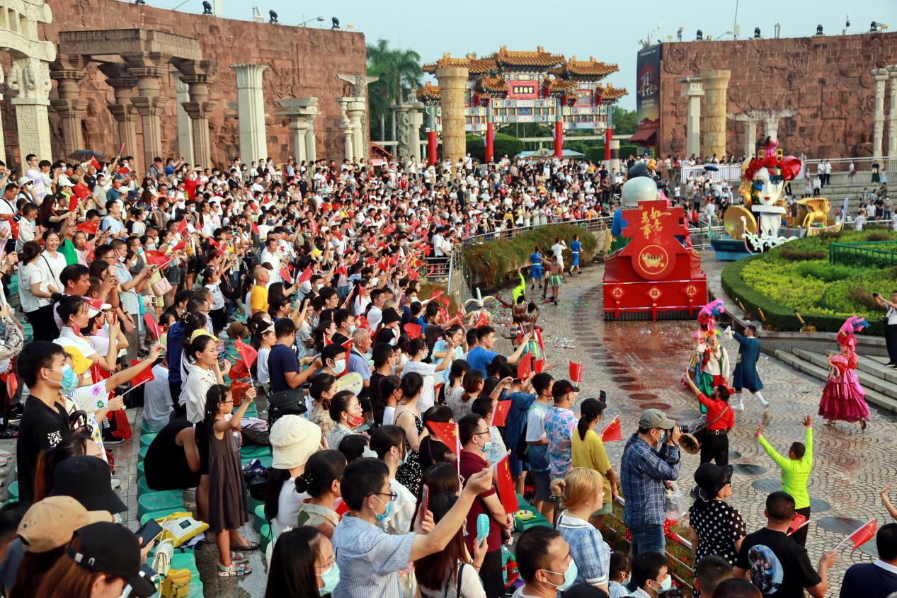 讀特客戶端·深圳新聞網(wǎng)2021年10月1日訊(記者 田志強 通訊員 陳嘉琳 黃海峰)今天,深圳世界之窗迎來第一波旅游小高峰。上午10:00整,世界之窗前廣場舉行了莊嚴(yán)的升國旗儀式,現(xiàn)場游客齊唱國歌,高亢嘹亮的歌聲響徹深南大道,激動人心。閘口處,俄羅斯歡樂家庭劇、異域風(fēng)情迎賓禮以國際歡樂氛圍喜迎八方來客。