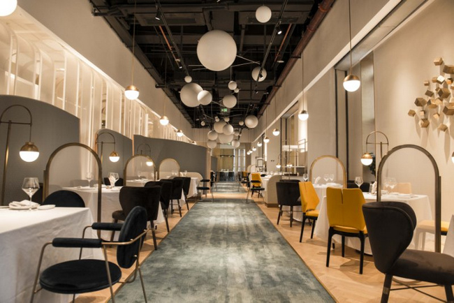 以黑色和金色為主色調(diào)的梧桐PLUS,選用流動(dòng)的線條對(duì)餐廳空間進(jìn)行分割。桌與桌之間的距離保證了食客對(duì)話的私密性和安全性。即使沒(méi)有預(yù)定到包廂,也不用擔(dān)心旁邊食客的閑聊會(huì)影響到彼此。