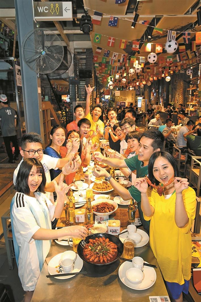 但這次世界杯期間,許女士找到了一個好去處:“看球其實不重要,重要的是大家聚在一起,但口味一定要找大家都能接受的,所以挑來挑去最后選擇了龍巢?!痹谧蛲淼凝埑驳陜?nèi),一整盤的蛋黃味小龍蝦被許女士吃個精光:“這是吃得最暢快的一次,整個氛圍也很到位,接下來的比賽就扎根在這里了。”