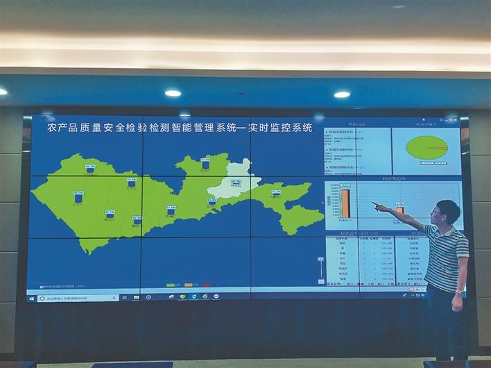 對(duì)于農(nóng)產(chǎn)品質(zhì)量安全檢驗(yàn)檢測(cè)智能管理系統(tǒng)將來的功能設(shè)想,農(nóng)檢中心工作人員也向記者進(jìn)行了模擬展示,整個(gè)智能管理系統(tǒng)將會(huì)有“數(shù)據(jù)查詢”、“抽檢動(dòng)態(tài)”、“實(shí)時(shí)展示”等多種功能。在“實(shí)時(shí)展示”中,記者看到屏幕上出現(xiàn)了深圳十區(qū)(新區(qū))的電子地圖,每個(gè)區(qū)(新區(qū))的農(nóng)產(chǎn)品檢測(cè)合格率都可以按照年度、月度、每天進(jìn)行顯示,不僅如此,每個(gè)區(qū)(新區(qū))所有街道的檢測(cè)合格率也都能在電子地圖上展現(xiàn)出來。