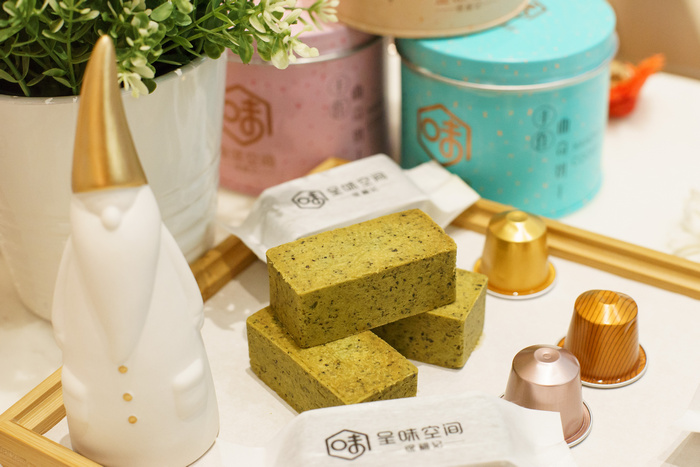 除了這款奶黃流心酥,徐福記實(shí)體品牌體驗(yàn)店——呈味空間主打的現(xiàn)烤手工鳳梨酥還有多種口味,有經(jīng)典原味/蔓越莓/馥香烏龍茶/相思抹茶/玫瑰口味供君任選。每款鳳梨酥的誕生都來之不易,從材料制作、烘焙、出爐都要經(jīng)過糕點(diǎn)師傅的精心手工打磨。花費(fèi)15種原料,經(jīng)過11道工序,連各種用料配比都要精確到克才實(shí)現(xiàn)一塊鳳梨酥的誕生,看得出這塊不普通的鳳梨酥“出生“有多矜貴。而且原材料都是精心挑選的清甜細(xì)膩陽光土鳳梨,通常10個才有一個符合要求,制作一盒就至少需要整整20個。反復(fù)打磨鳳梨的果肉,再熬制成細(xì)膩的、富有纖維感的果餡,絲絲纖維口感,一口下去,滿滿鳳梨果肉,瞬間得到視覺與味蕾的雙重滿足。特別一提的還有制作鳳梨酥的糖,不是普通的白砂糖,而是健康而且低熱量的 “海藻糖”,簡直是為擔(dān)心發(fā)胖問題的吃貨們帶來的福音。只有10天保質(zhì)期的美味,吃貨們不用半個鐘就能解決了哈哈。