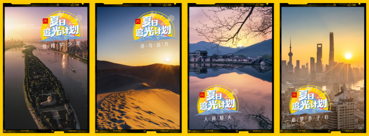 7月6日,麥當勞“夏日追光計劃”從西安大雁塔出發(fā),來到長沙橘子洲頭,領(lǐng)略“恰同學少年”的意氣風發(fā)。從敦煌、漠河,到青海湖和張掖,一起尋找“詩與遠方”??缭角鄭u、杭州、福州、大連、蘇州和平遙,看遍“人間煙火”。在廣州小蠻腰和深圳東門,感受“追夢赤子心”。為期28天的追光之旅,暖心浪漫的麥當勞為大家搜集不同城市的日出,并用四個主題串起28地。敬請關(guān)注麥當勞嗶哩嗶哩(B站)帳號,鎖定連續(xù)28天的直播,也可以訪問麥當勞官方網(wǎng)站觀看每天日出的精華視頻。