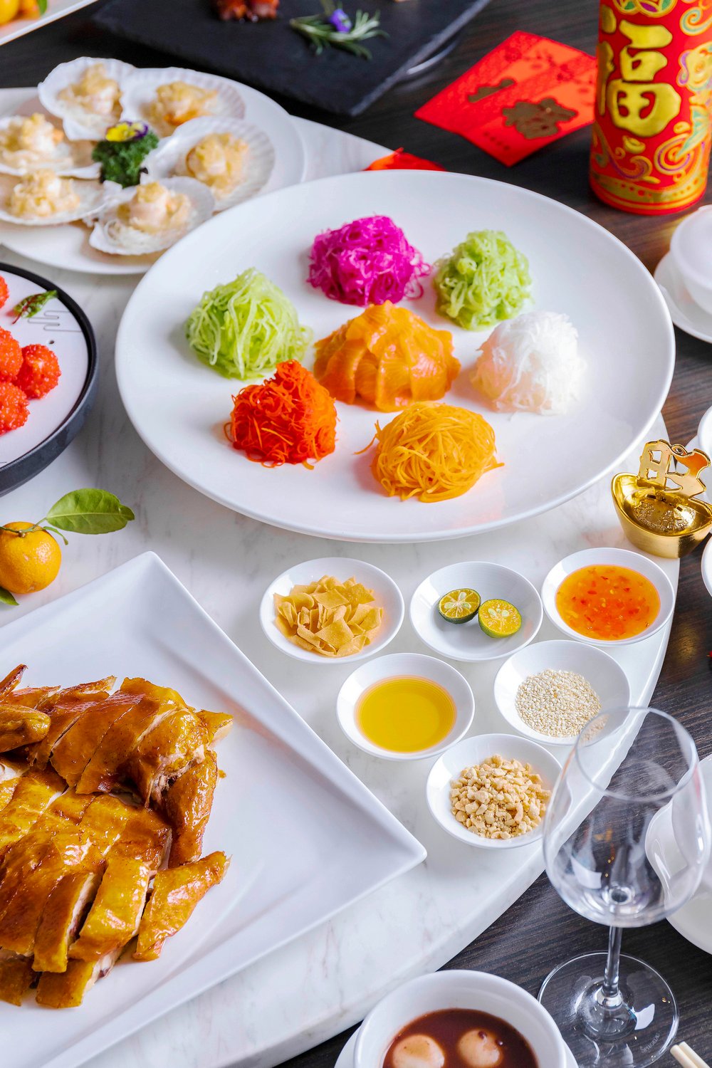 除了兩款福袋,另外還有5款年夜飯可以選擇,“迎春接福宴”、“闔家團(tuán)圓宴”、“萬(wàn)事如意宴”、“花開(kāi)富貴宴”以及“金玉滿堂宴”。金茂深圳JW萬(wàn)豪酒店中餐廳主廚劉師傅精心設(shè)計(jì)的賀歲菜肴除了擺盤講究之外,亦道道有講究。如:寓意“風(fēng)生水起”的三文魚生撈起,以三文魚生為主要食材,配以六款色彩繽紛的蔬菜絲,享用時(shí)眾賓客齊齊用筷子高高撈起,在開(kāi)席即可討個(gè)“越撈越旺”的好彩頭!還有上菜時(shí)冒出“仙氣”的爆汁紅顏妃子笑,寓意“吉祥如意”、寓意“牛氣沖天”的香芹腰果牛肉粒、“年年有余”的清蒸老虎斑、“五谷豐登”的總廚鮑汁炒飯等多款吉祥菜式。