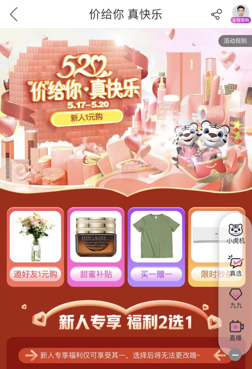 為了迎接今年“520”告白季的到來,國美“真快樂”APP準確把握用戶最迫切的訴求——對于愛的表達。平臺推出52000份情人專屬禮,為消費者帶來超值好物;以“新用戶1折購”等活動快速拉新,以“情侶同款買1贈1”等活動增加用戶黏性。