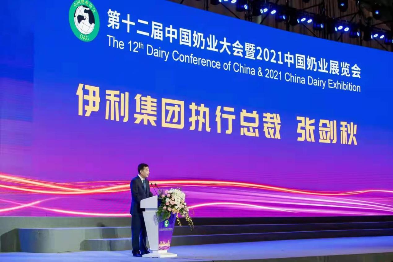 伊利集團(tuán)執(zhí)行總裁張劍秋在大會上致辭