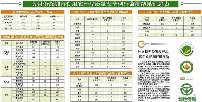 深圳市食品藥品監(jiān)督管理局5月份在全市范圍內(nèi)的69個(gè)食用農(nóng)產(chǎn)品生產(chǎn)、經(jīng)營(yíng)場(chǎng)所抽檢食用農(nóng)產(chǎn)品1280份,其中種植業(yè)產(chǎn)品560份,8份不合格;畜禽類(lèi)產(chǎn)品370份,4份不合格;水產(chǎn)品350份,22份不合格。檢測(cè)不合格的產(chǎn)品均已實(shí)施了后續(xù)處理。