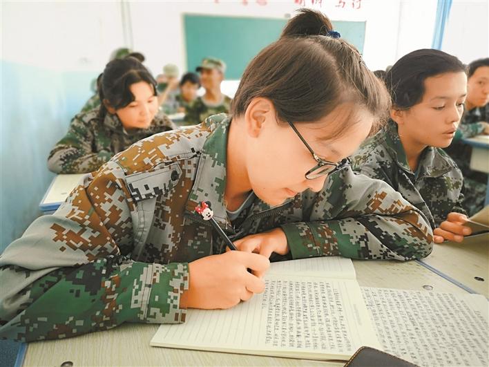 深喀一高學(xué)生身穿迷彩服在聚精會神上課。