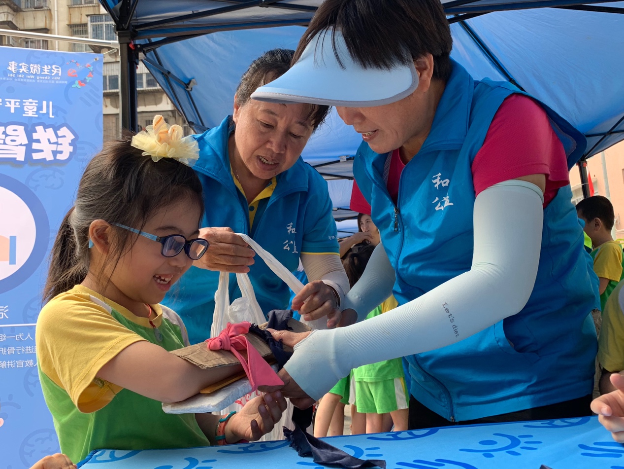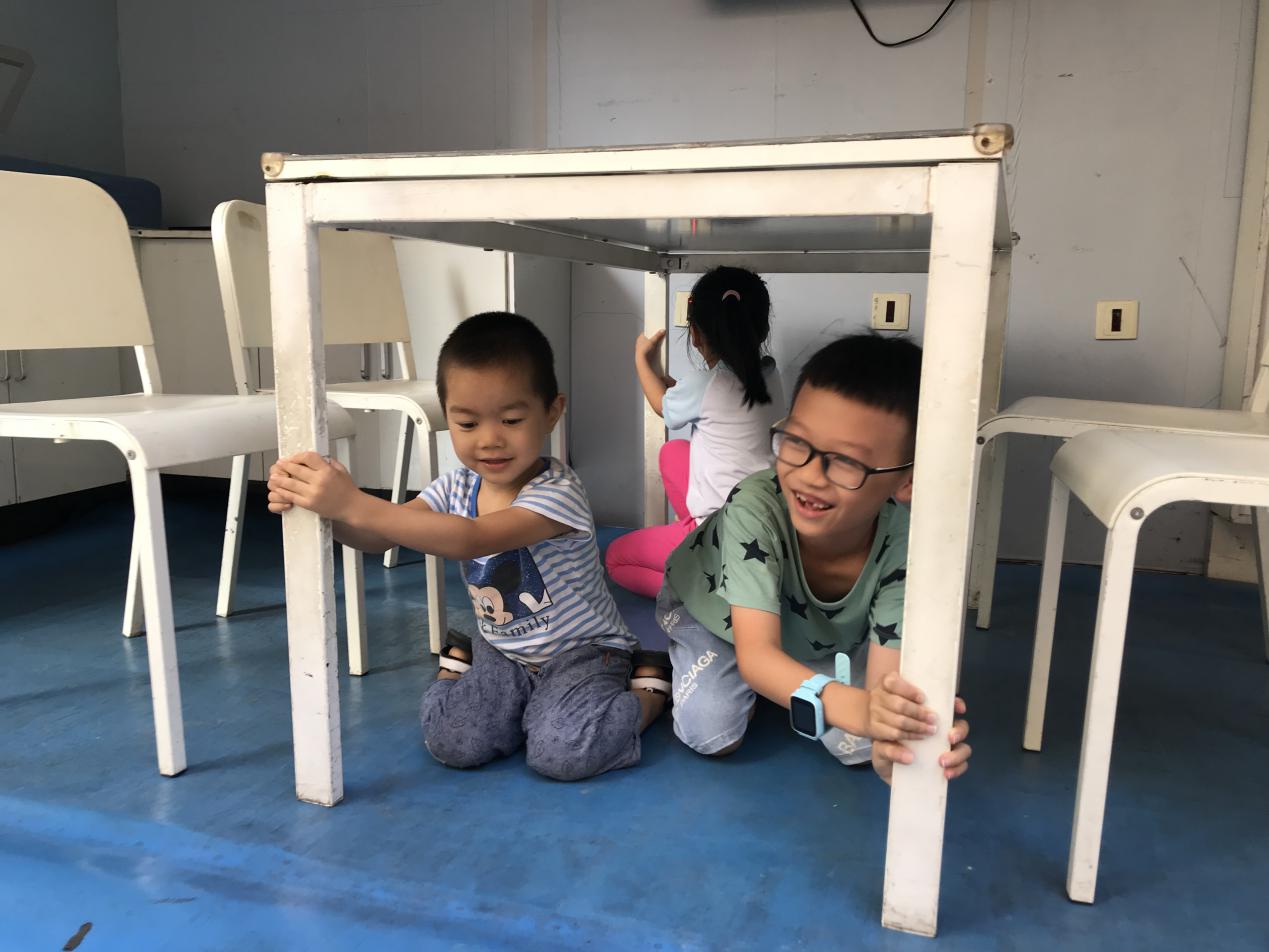 兒童平安訓(xùn)練營活動共有5個(gè)版塊,分別是動感地帶、火眼金睛、鐵壁鋼手、浮力盔甲、應(yīng)急包。動感地帶活動版塊的主體是地震體驗(yàn)平臺,通過安全教育車的地震體驗(yàn)功能,社區(qū)居民成功學(xué)會地震躲避知識要點(diǎn):規(guī)避易倒塌、易破碎、已墜落三類物品;桌下/床下躲避跪、躲、抓三大要點(diǎn)。浮力盔甲是當(dāng)身邊發(fā)生溺水或者存在溺水隱患時(shí),可以利用身邊常用的物品比如礦泉水瓶和衣服制作緊急救生衣。鐵壁鋼手是災(zāi)害發(fā)生、救援難以及時(shí)到達(dá)情況下,利用身邊的物品,對手臂骨折者進(jìn)行簡易包扎?;鹧劢鹁κ窃谠S多大地震、火災(zāi)和意外傷害中,教會學(xué)生認(rèn)識一些室內(nèi)、室外的常見安全隱患。