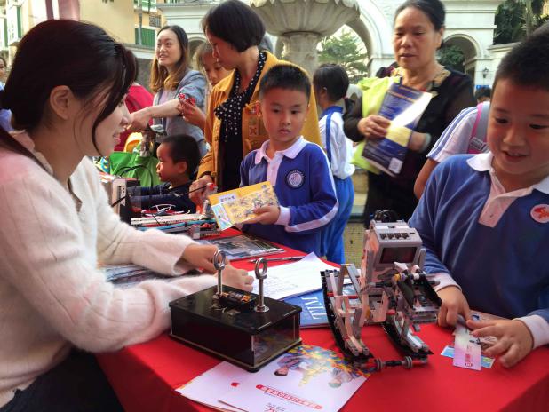 市民們在體驗EV3編程機(jī)器人與電磁感應(yīng)千人震項目