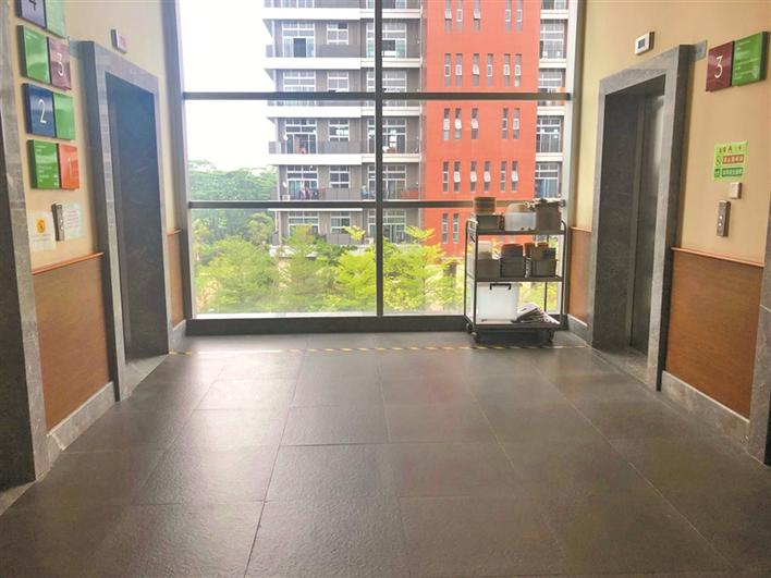 上周五記者來到事發(fā)現(xiàn)場,長廊中的餐車均已撤走,但明顯可看出,若擺上餐車,狹窄的長廊必定會對園中幼童產生安全隱患。校方表示,目前已選定學校教學樓電梯前一處空閑區(qū)域作為餐車放置區(qū),該區(qū)域較為寬闊,且孩子們少在此處上下,相對安全;就餐時間之外,學校也會將餐車撤離教學活動區(qū)域。
