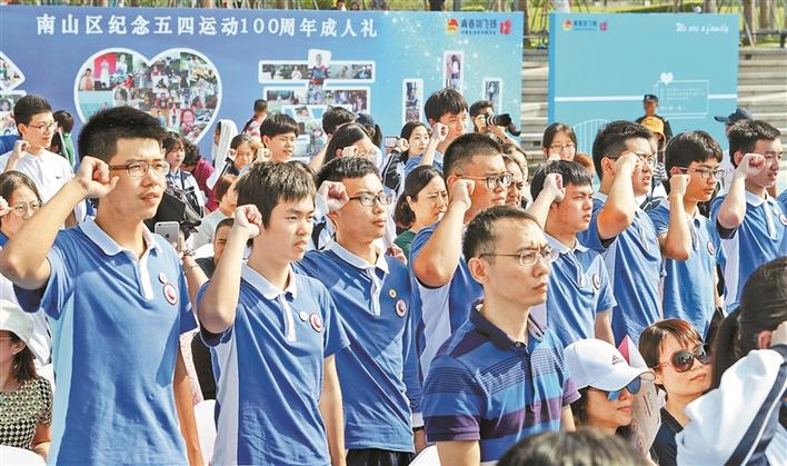 深圳特區(qū)報5月14日訊 “我是中華人民共和國公民,在十八歲成年之際,面對國旗,莊嚴(yán)宣誓……”近日,“2019‘青春心向黨建功新時代’南山區(qū)紀(jì)念五四運動100周年成人禮”在深圳灣公園潮汐廣場舉行,來自南山區(qū)各所高中的260名中學(xué)生佩戴成人徽章,面向國旗莊嚴(yán)宣誓。這是繼去年團中央出臺成人儀式規(guī)范文件后,南山率先嘗試開展的區(qū)域性成人禮。