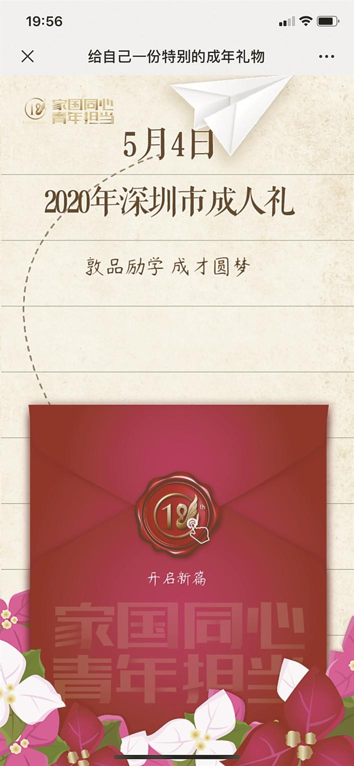 “往年的成人禮活動都在線下舉辦,本以為今年受疫情影響,成人禮可能舉辦不了,沒想到改到了線上舉行,這種方式很有創(chuàng)意,也彰顯了深圳對未來主人的高度重視?!?/p>