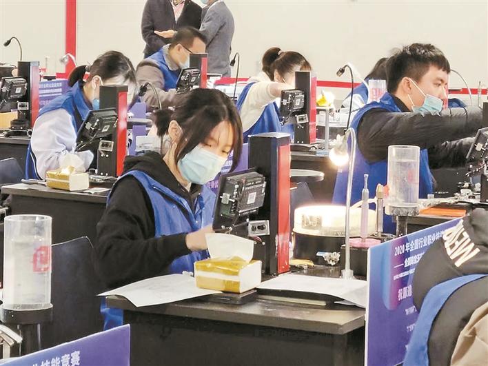 博倫職業(yè)技術(shù)學(xué)校學(xué)生參加珠寶玉石檢測(cè)技能大賽。