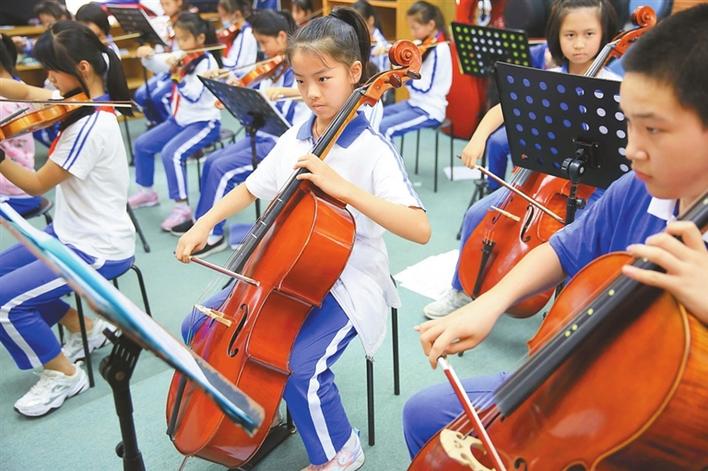 ▲海濱實(shí)驗(yàn)小學(xué)深圳灣部學(xué)生放學(xué)后在校排練交響樂。