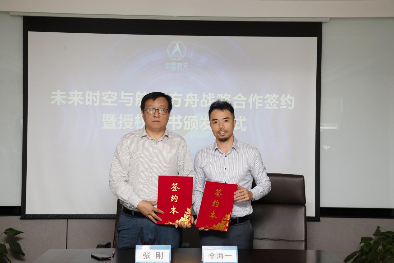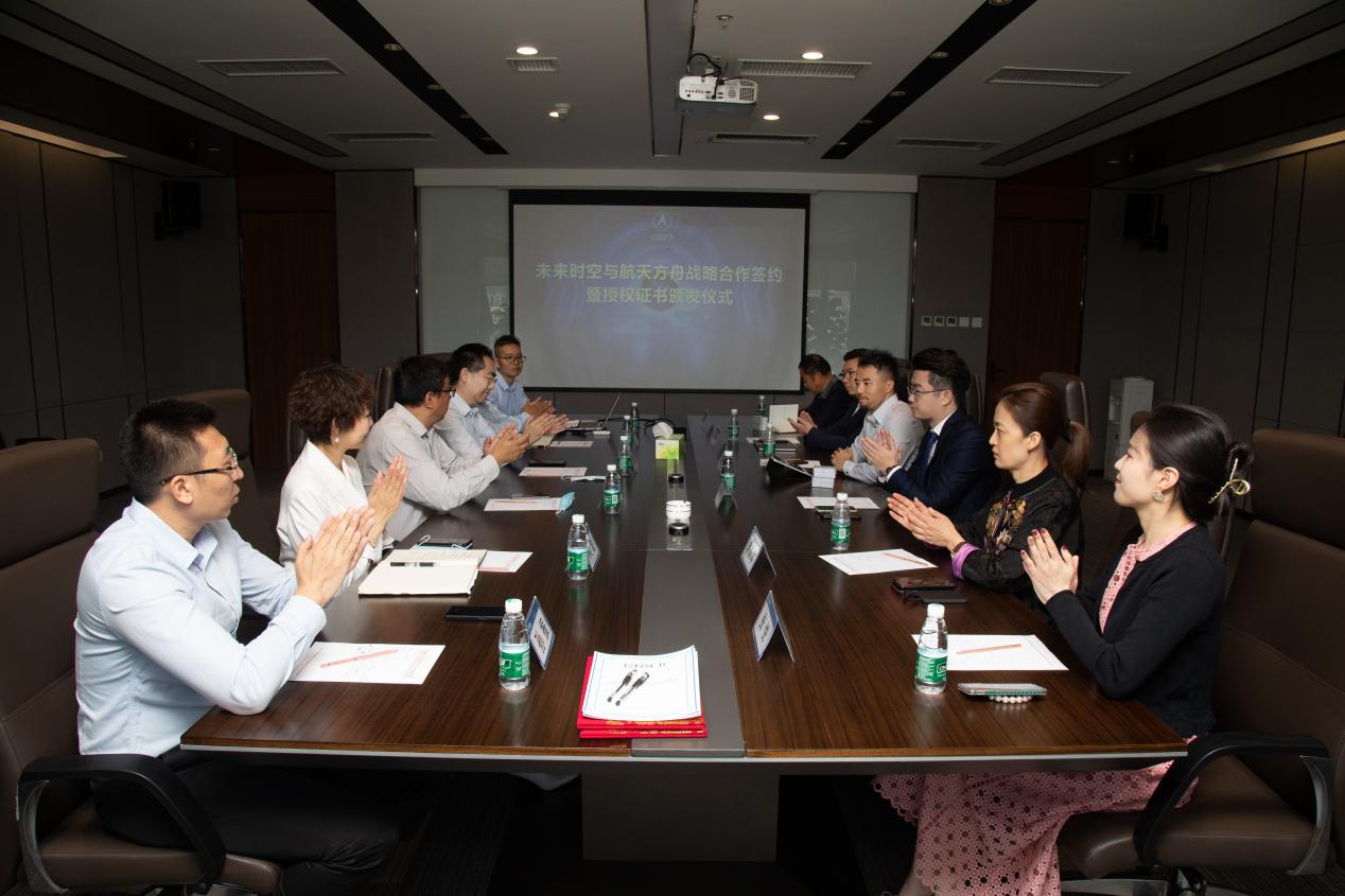 見(jiàn)圳客戶(hù)端·深圳新聞網(wǎng)2021年5月31日訊 (記者 陳彬)為深入推進(jìn)航天科技文化技術(shù)在社會(huì)生活、人民健康、科普教育、素質(zhì)教育和文化產(chǎn)業(yè)等領(lǐng)域的成果轉(zhuǎn)化和廣泛應(yīng)用,在中國(guó)航天系統(tǒng)科學(xué)與工程研究院有關(guān)領(lǐng)導(dǎo)的關(guān)心幫助下,未來(lái)時(shí)空(深圳)文化產(chǎn)業(yè)有限公司和北京航天方舟空間技術(shù)有限公司就航天文創(chuàng)產(chǎn)品開(kāi)發(fā)、航天康養(yǎng)項(xiàng)目建設(shè)、航天科普教育及商業(yè)化航天器應(yīng)用等方面達(dá)成了全面合作,于5月28日上午在北京簽署戰(zhàn)略合作協(xié)議并頒發(fā)授權(quán)證書(shū)。