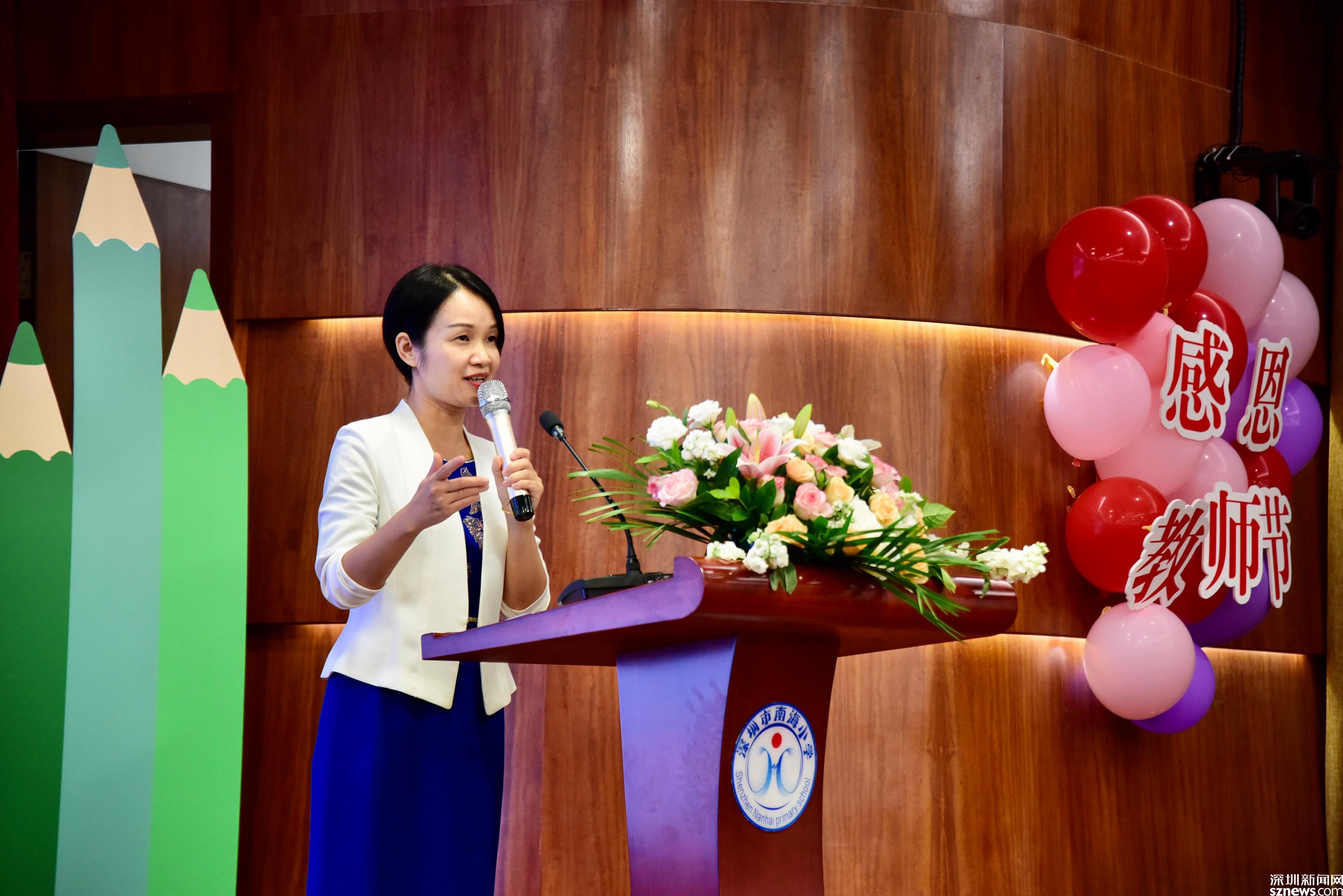 讀特客戶端·深圳新聞網2021年9月10日訊 (記者 曹園芳)賡續(xù)百年初心,擔當育人使命。9月9日下午,伴隨著下課鈴響,深圳市南山區(qū)南海小學教師齊聚一堂,共同慶祝第37個教師節(jié),并對優(yōu)秀教師進行表彰。南山區(qū)教育局陳登福副局長,南海小學高鵬校長、李惠副校長、商洪德副校長等領導嘉賓出席了活動,并為優(yōu)秀教師頒獎。