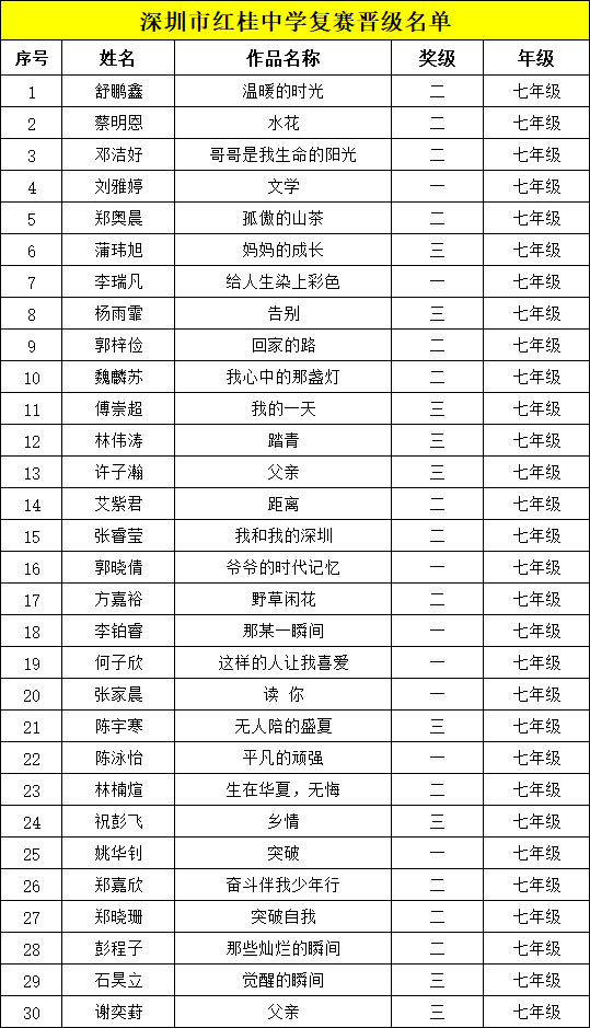 自2021年1月,活動征稿啟動以來,獲得了深圳市廣大中小學生、教師、文學愛好者的熱烈響應積極參與,吸引了深圳百余所學校的上萬人關注報名?,F(xiàn)公布深圳市紅桂中學晉級復賽名單如下: