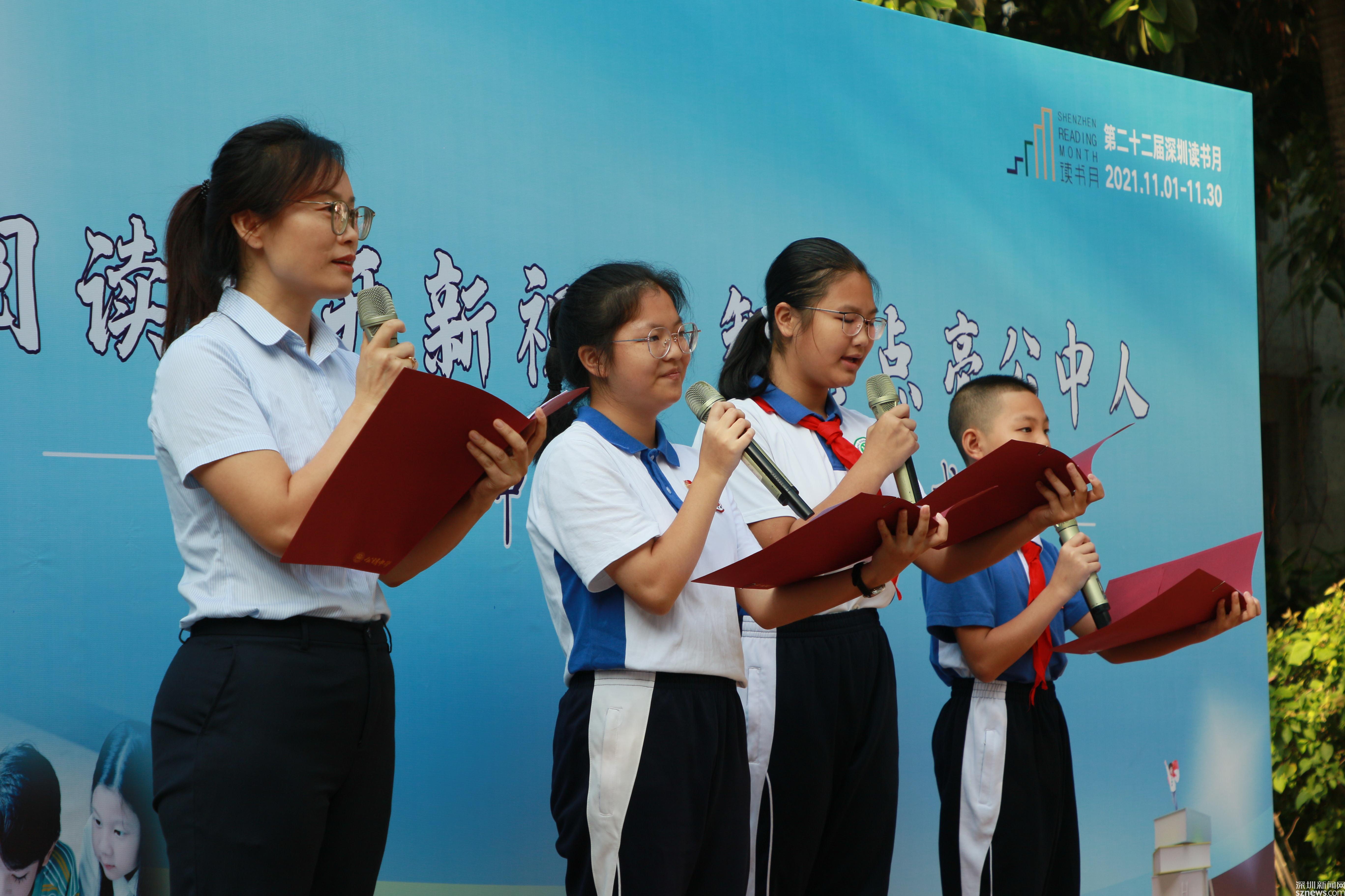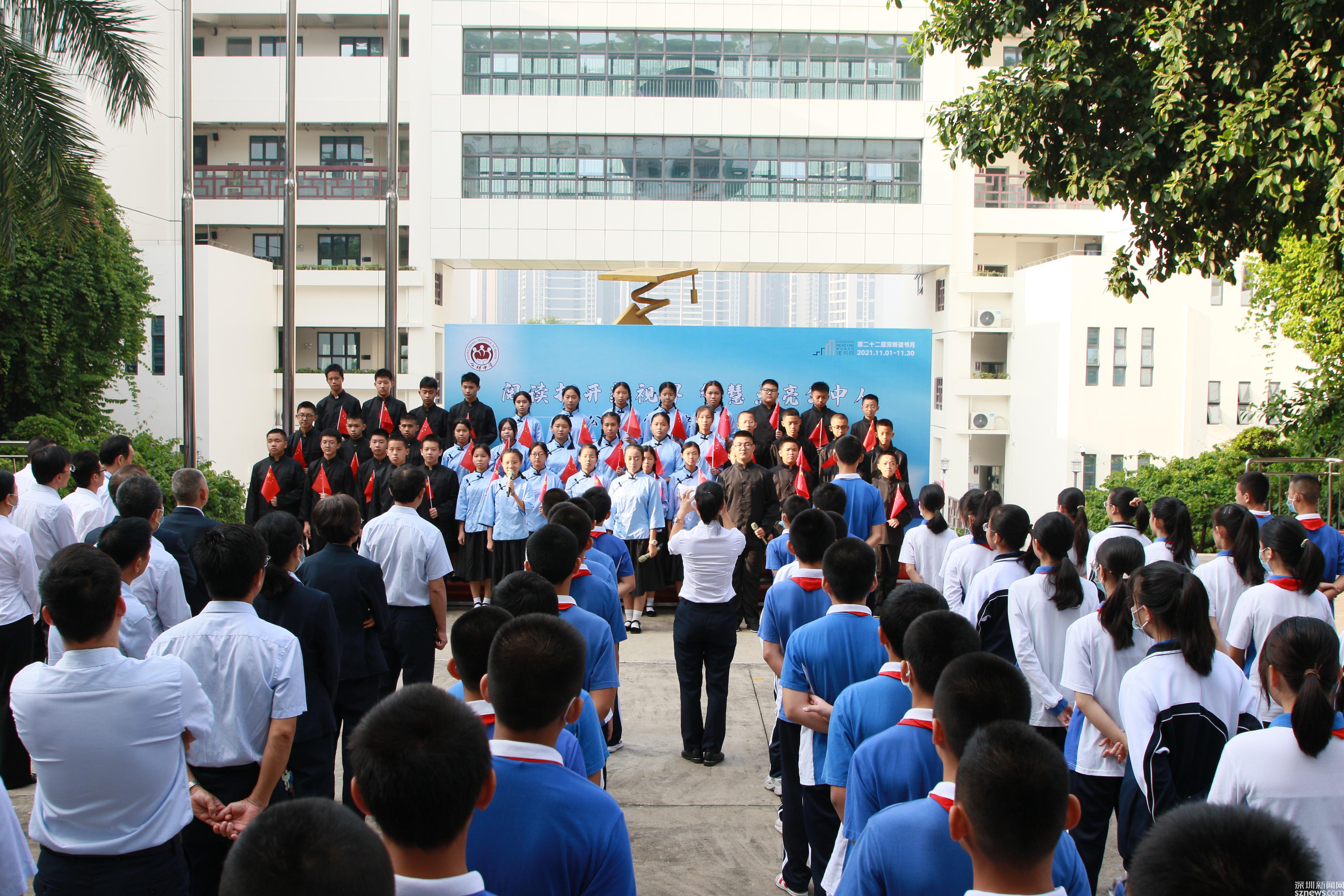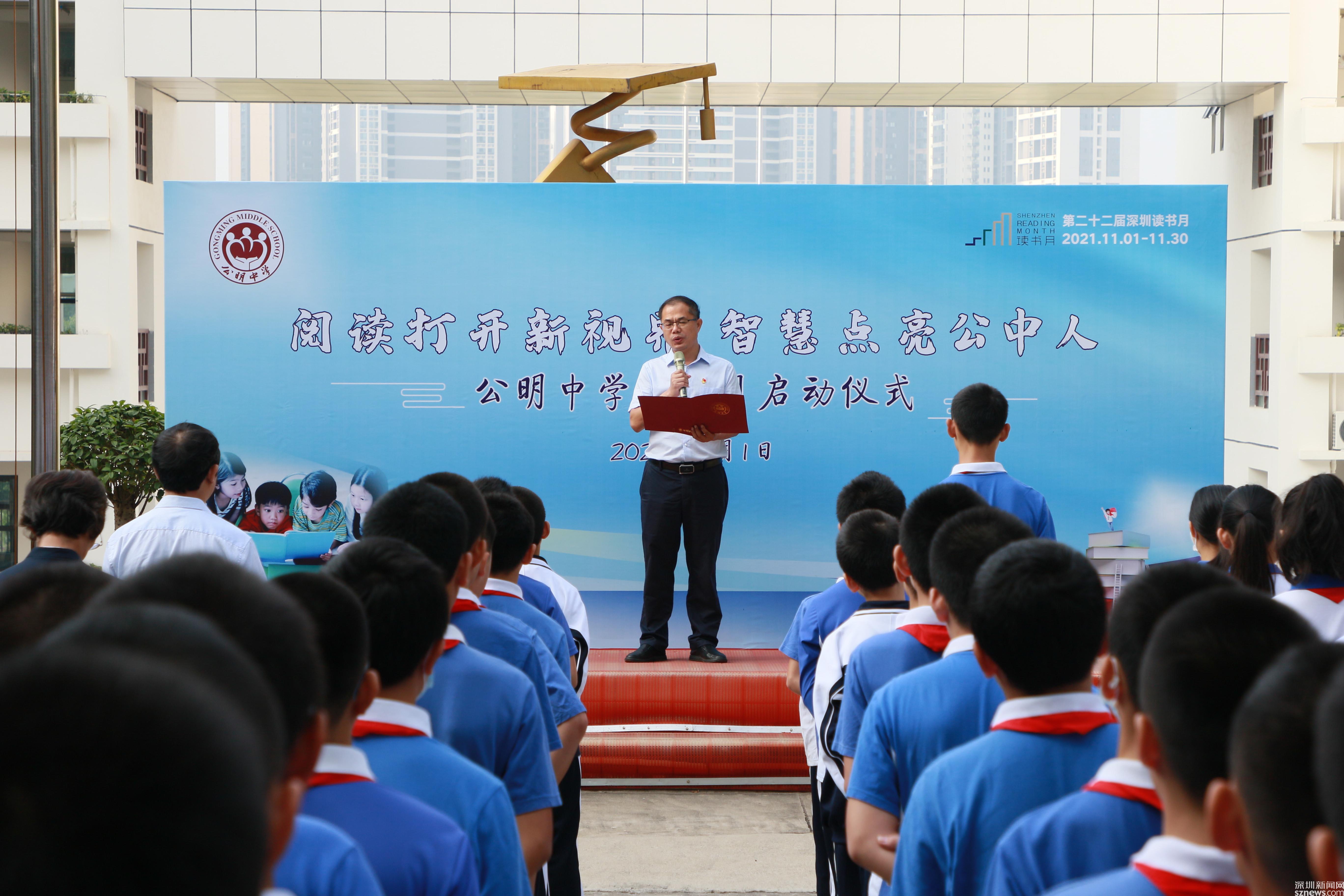 讀特客戶端·深圳新聞網(wǎng)2021年11月2日訊 (記者 曹園芳 通訊員 丘翹楚 劉小云 曾靜敏)為弘揚(yáng)“尊重知識崇尚文明”的閱讀理念,培養(yǎng)師生良好的閱讀習(xí)慣,營造智雅的學(xué)習(xí)氛圍,塑造濃郁書香學(xué)習(xí)型校園,11月1日上午,深圳市光明區(qū)公明中學(xué)組織開展了本年度讀書月啟動儀式,全校師生參加了活動,活動由初二(5)班譚欣怡同學(xué)主持。