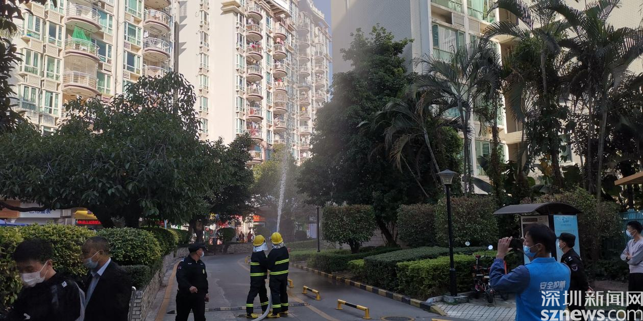 演練情景設(shè)定為巡查人員發(fā)現(xiàn)火情,第一時間向社區(qū)安全相關(guān)負責人匯報,安保處立刻報警并啟動消防應(yīng)急預(yù)案。隨后火警警報驟響,樓道內(nèi)冒出濃煙,疏散演練正式開始。居民們在工作人員的指揮下,用口罩、衣服等捂口鼻,屈膝彎腰沿著既定的疏散路線,迅速向安全區(qū)域撤離。隨后社區(qū)消防員趕赴現(xiàn)場,使用高壓水槍撲滅火災(zāi),解除警報。演練結(jié)束后,社區(qū)還組織居民參加安全體驗活動。