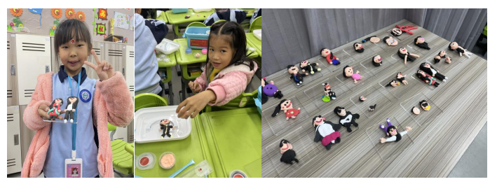 翌日,老師們再次來到華一校園,為小學(xué)部104班的學(xué)生們帶來了一場以“給老師塑像”為主題的泥塑體驗課。課堂中,老師先是一步步引導(dǎo)孩子該如何觀察他們的模特,后又鼓勵他們大膽動手,釋放自己的想象力和創(chuàng)造力。孩子們也都“各顯神通”,用自己獨特的方式去表現(xiàn)他們眼中老師的形象。有的為老師做了蝴蝶結(jié),有的為老師帶上耳環(huán),有的給老師換衣服,有的給老師戴眼鏡,氣氛十分活躍。在課堂結(jié)束時,大家都興奮地捧著自己的作品,與老師、同學(xué)們分享著創(chuàng)作的喜悅。