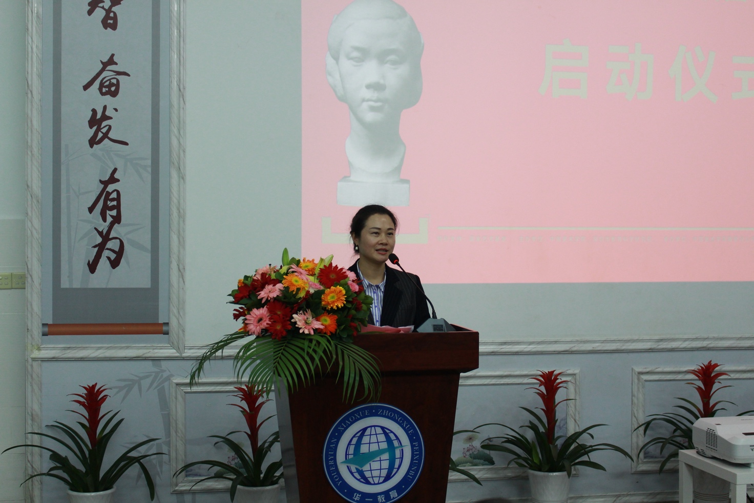 在此次開幕儀式上,中國(guó)美術(shù)學(xué)院雕塑與公共藝術(shù)學(xué)院副院長(zhǎng)余晨星代表中國(guó)美術(shù)學(xué)院向華一實(shí)驗(yàn)學(xué)校捐贈(zèng)了一尊經(jīng)典中國(guó)人形象的教具作品——程曼叔先生的 《少女頭像 》。啟動(dòng)儀式上,深圳市教育科學(xué)研究院院長(zhǎng)李桂娟、深圳樹寶安區(qū)教育局副局長(zhǎng)吳永明與潘曉蕾書記一起宣布“深圳市經(jīng)典作品進(jìn)校園”活動(dòng)正式啟動(dòng)。李桂娟院長(zhǎng)表示希望能與國(guó)美攜手,共同研究和推進(jìn)大灣區(qū)基礎(chǔ)教育中的藝術(shù)教育,促進(jìn)美育在深圳的發(fā)生與深入。