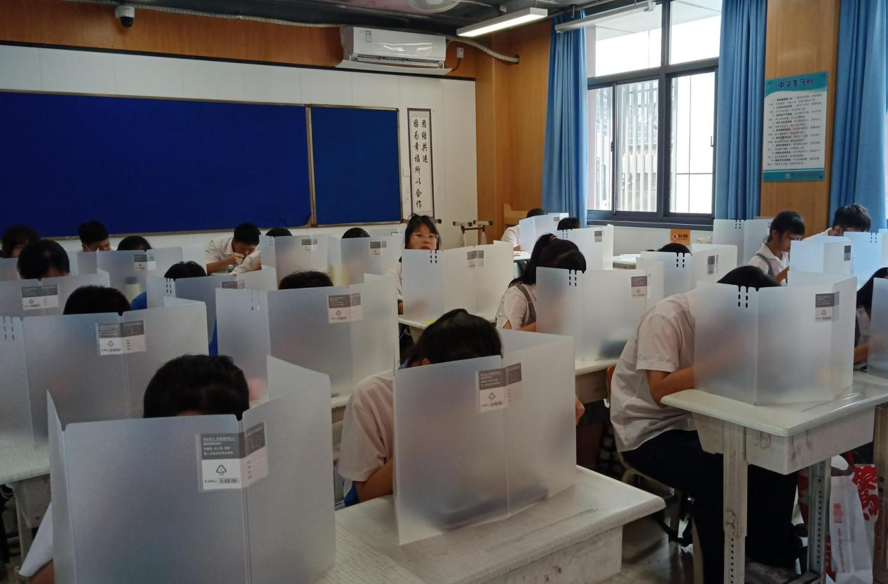 皇崗創(chuàng)新實驗學校給每一位同學都發(fā)放了擋板,讓學生們就餐衛(wèi)生又安心。(皇崗創(chuàng)新實驗學校供圖)